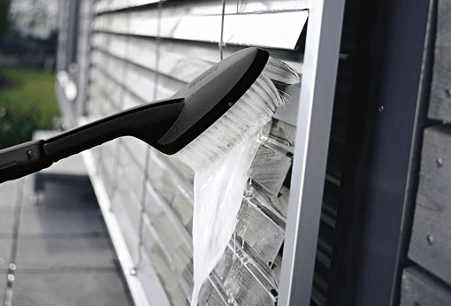 Совет для эффективной очистки: опустите рольставни, установите режим низкого давления в струйной трубке, нанесите чистящее средство снизу вверх и оставьте на пару минут для размягчения. Удалите грязь щеткой и промойте поверхность струей высокого давления.